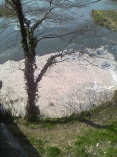 すぐ5分ぐらい行ったところに国宝のお城がありまして、そこの堀に咲いてた桜。